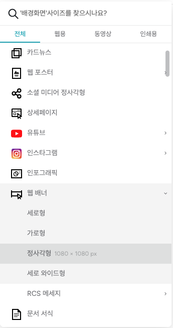 위의 이미지에서 새 디자인 만들기를 클릭하면 아래와 같이 메뉴가 나타나는데,