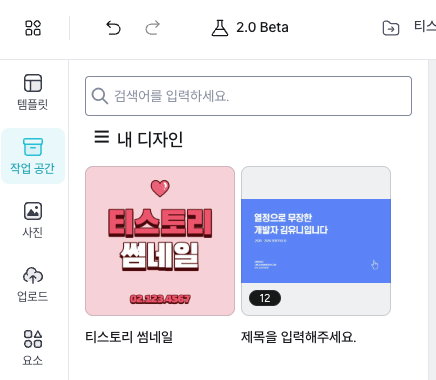 그리고 저장한 내용은 작업화면 좌측 메뉴 중 작업공간을 눌러 지금까지 작업한 내용을 확인할 수 있습니다.