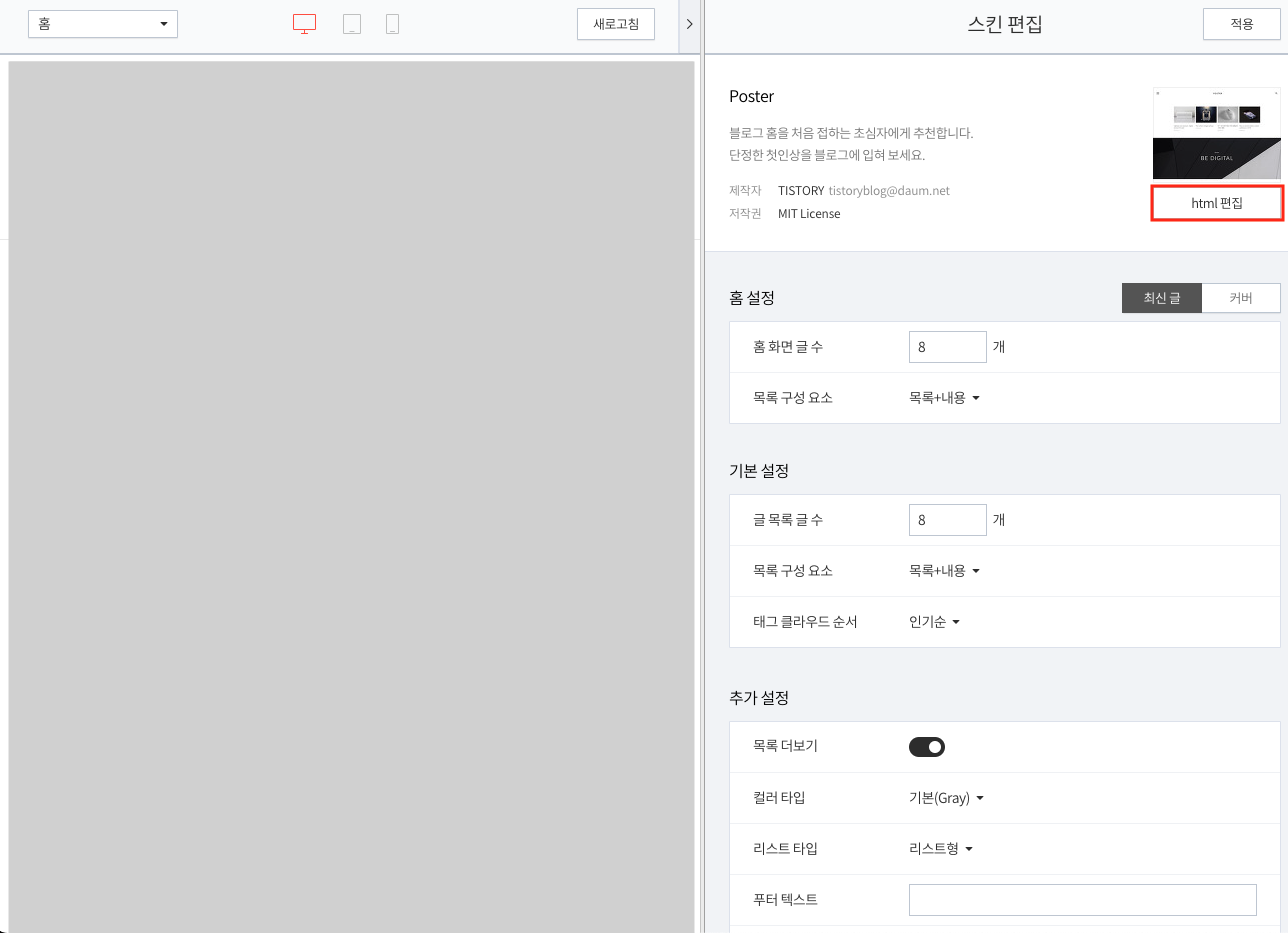 2. 다음은 우측 상단의 HTML 편집을 클릭합니다.