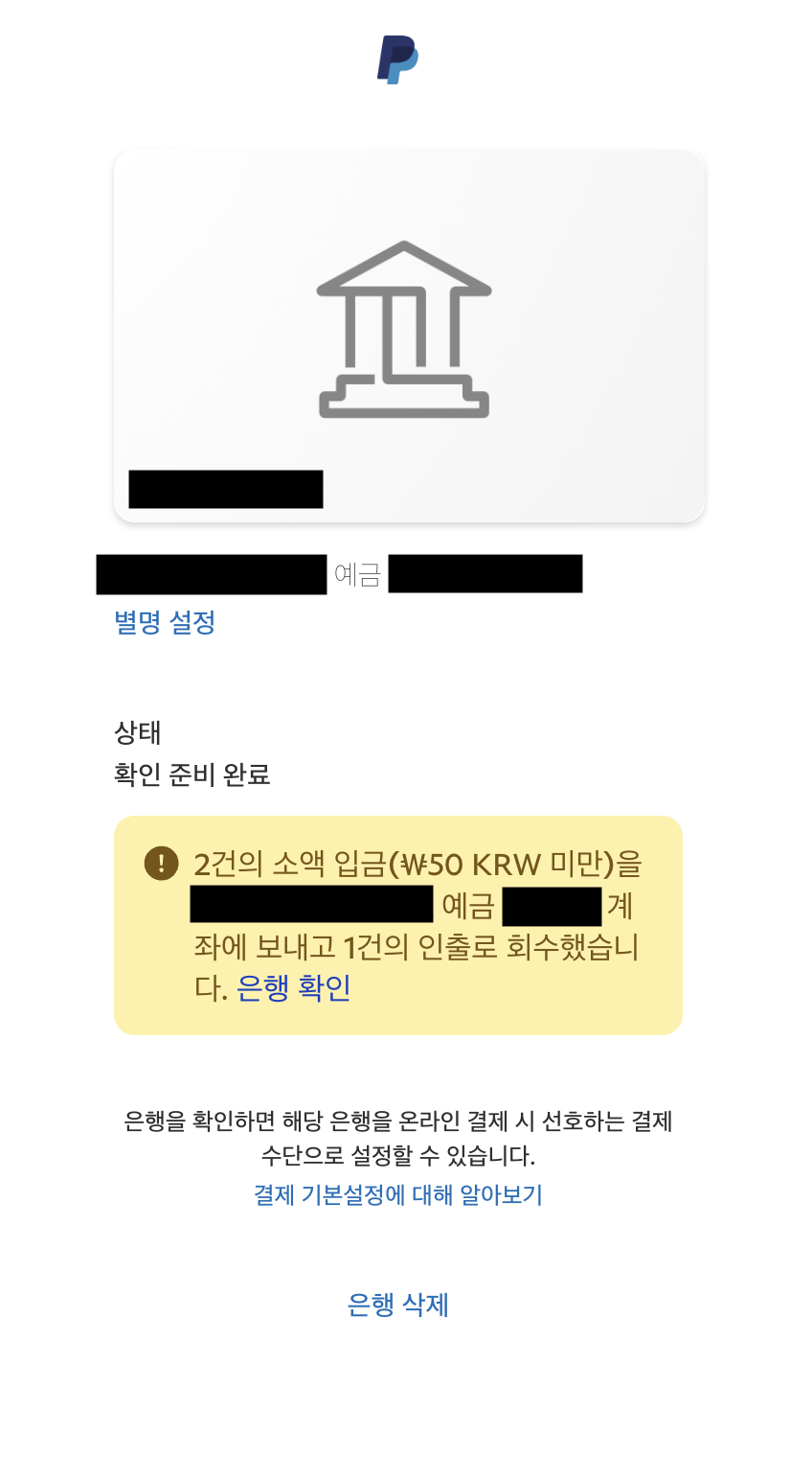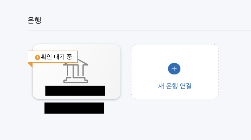 은행을 등록하자 마자 들어 왔기 때문에 아직 확인 대기 중이라는 테그가 붙어 있습니다.(가린 내용은 은행명과 계좌 번호 입니다.)